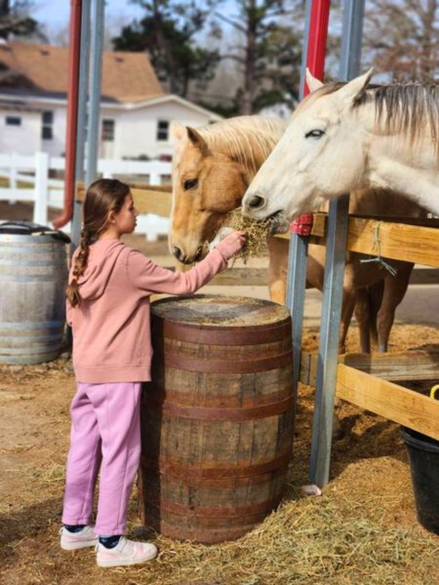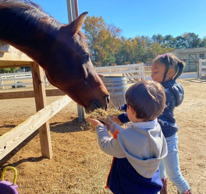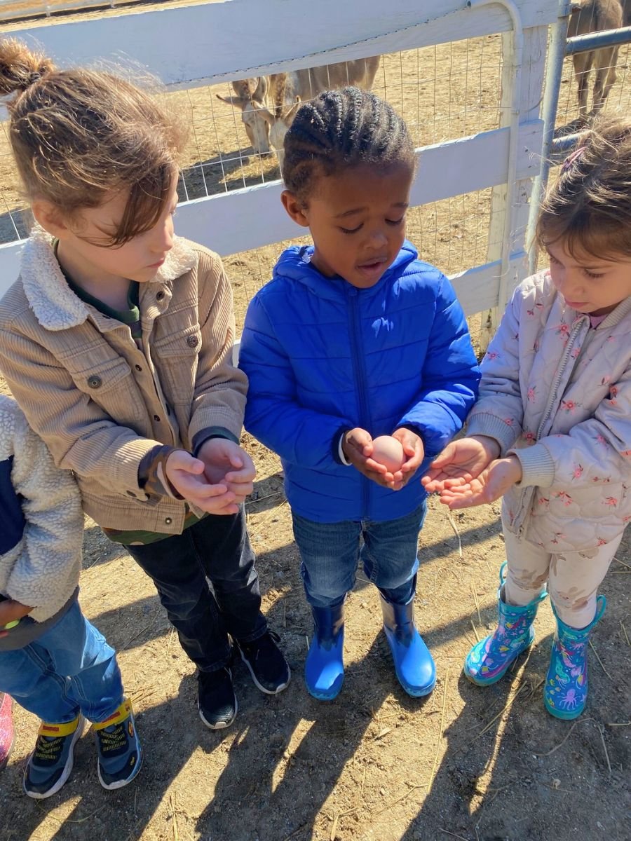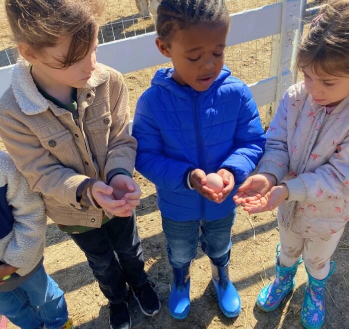 A typical day at Montessori Acres may include preparing feed for the horses, collecting fresh eggs from the chicken coop, brushing the miniature horses, observing the golden pheasants, walking the donkeys, and exploring the inner workings of a functioning farmstead.