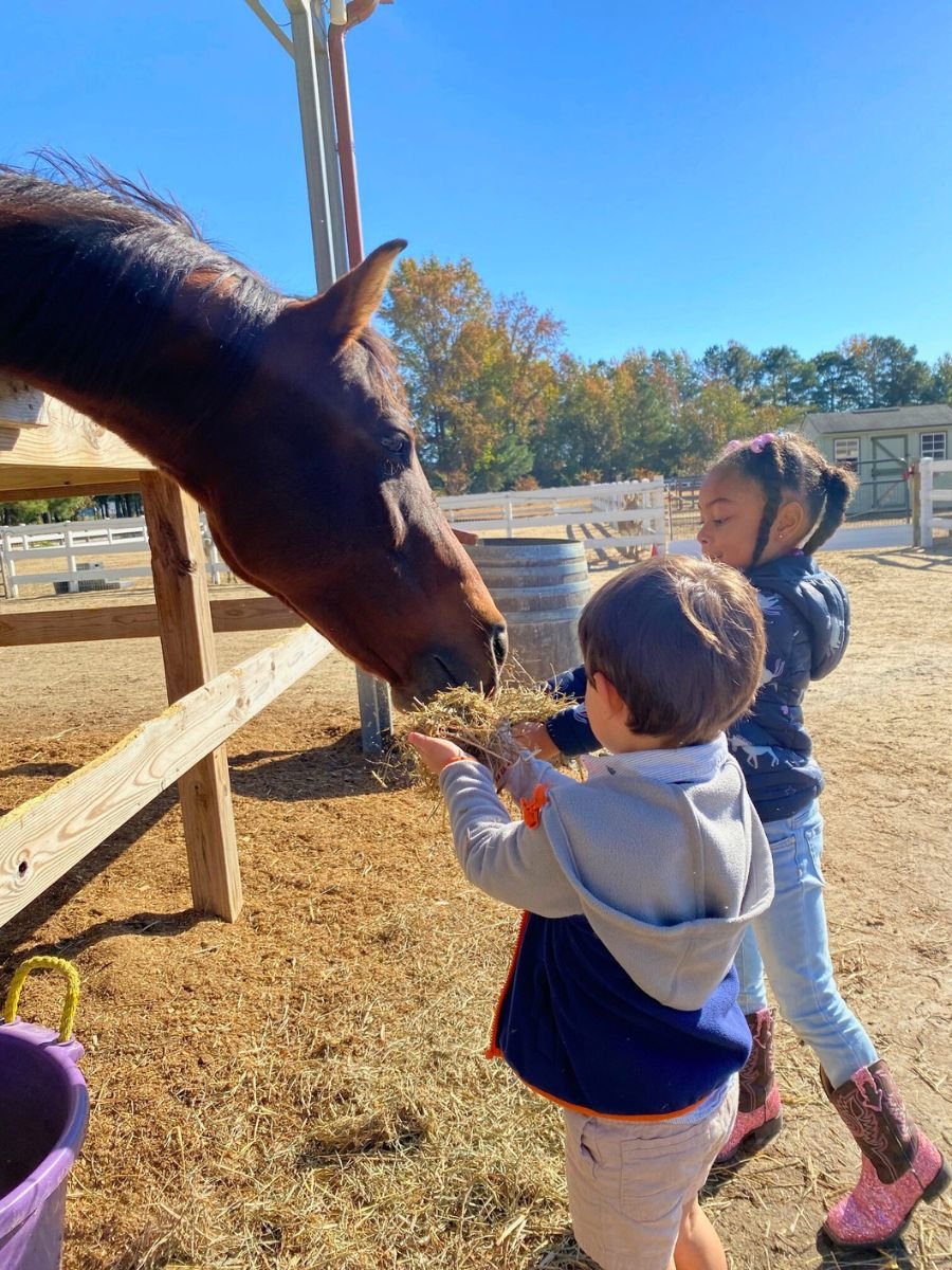 Under guided supervision, students’ groom, feed, exercise, and learn the daily needs of the animals. Through hands-on observation, exploration, and stewardship, children develop responsibility, empathy, and a deep respect for all living things. Our animals are well socialized and thoughtfully integrated into daily life on the farm, allowing students to participate confidently in meaningful care and interaction. In turn, the animals delight in the attention and care they receive, becoming valued partners in the learning process.