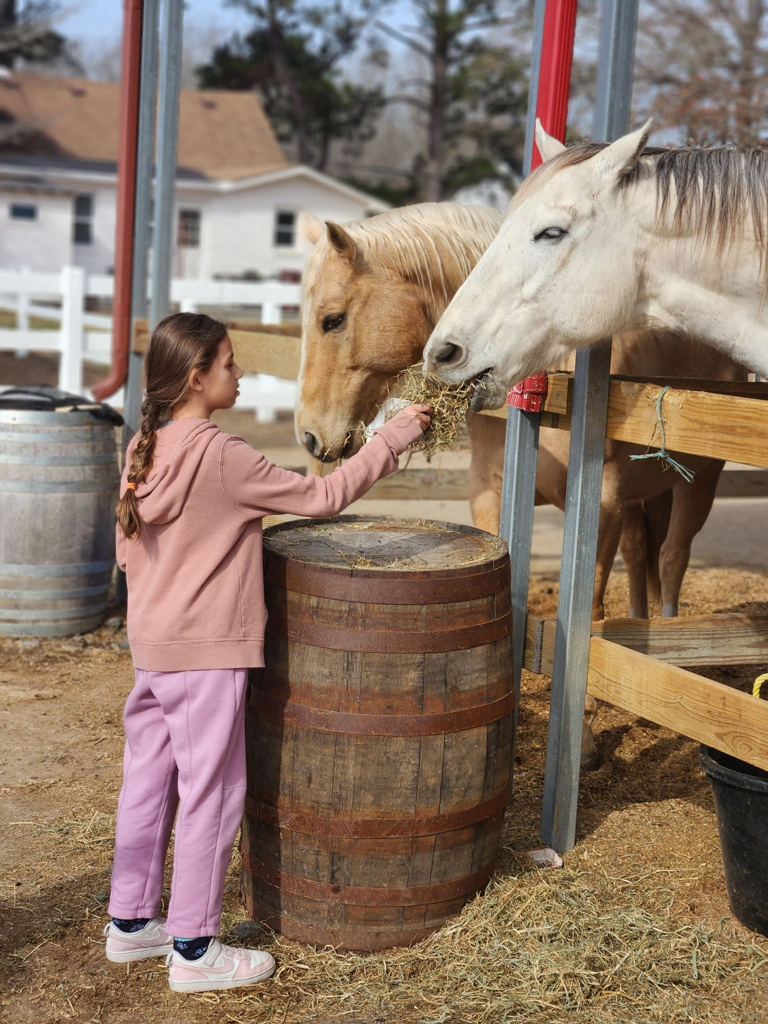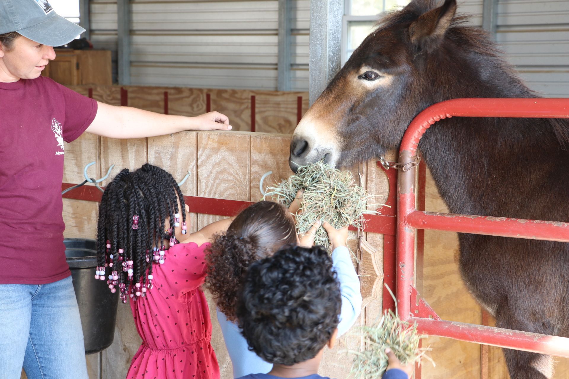 Students groom, feed, exercise, and learn about the daily needs of the animals. A typical day may include preparing the food for the horses, collecting eggs from the chicken coop, brushing the mini horses, visiting the golden pheasants, walking the donkeys, and learning about the inner workings of the farm.